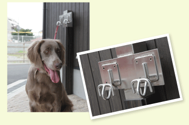 機能的で自然の光や風を体感できるドッグフェンス。 わんちゃん専用のひんやりとしたタイルスペース。 繋げておく事で、外出時も両手をフリーにできるリードフック。